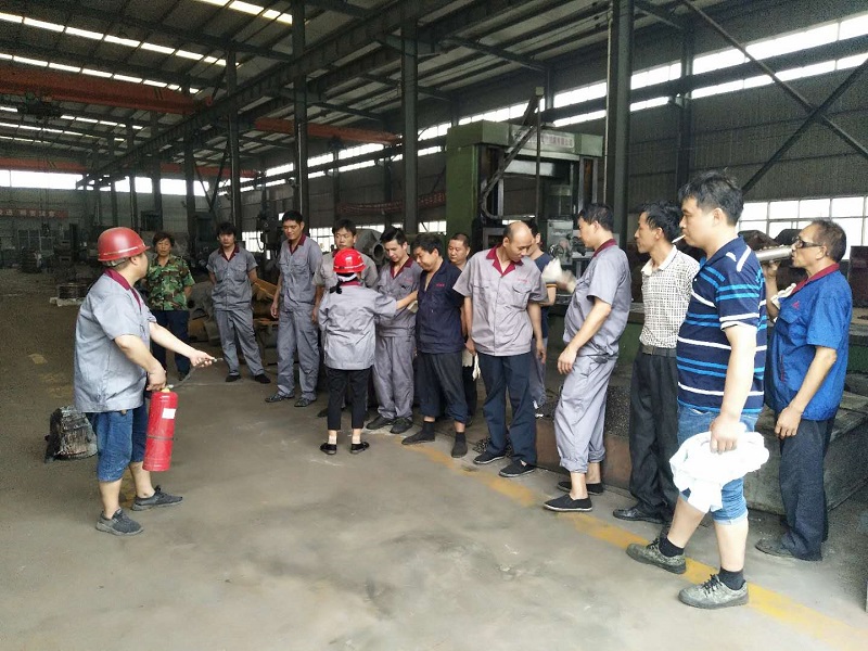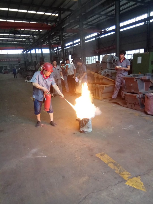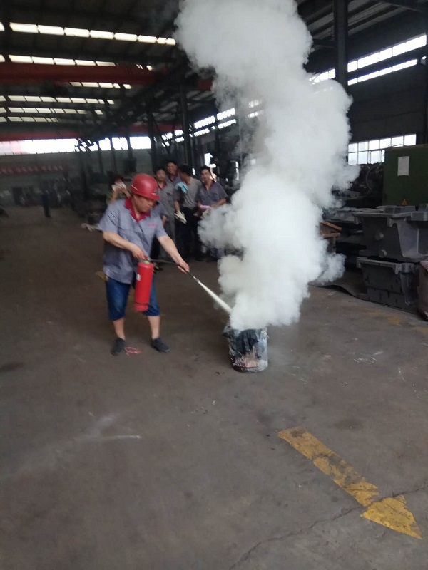 4、安全負(fù)責(zé)人和車間領(lǐng)導(dǎo)一同為大家展示發(fā)生火災(zāi)時滅火器演示